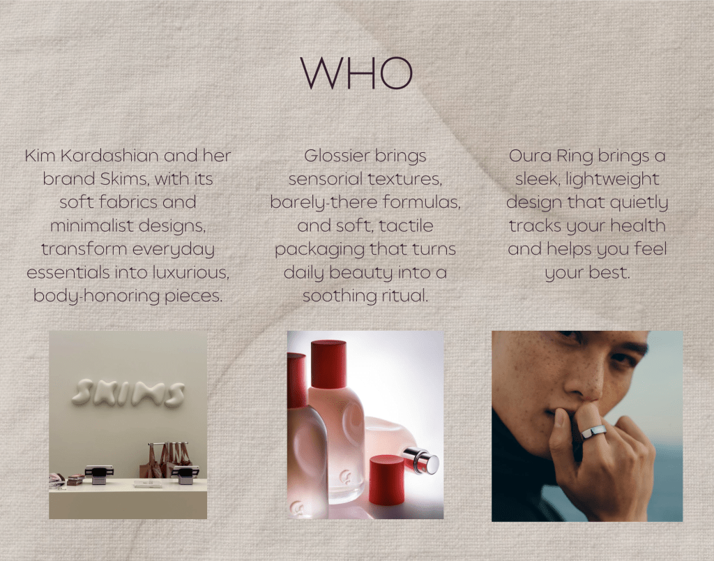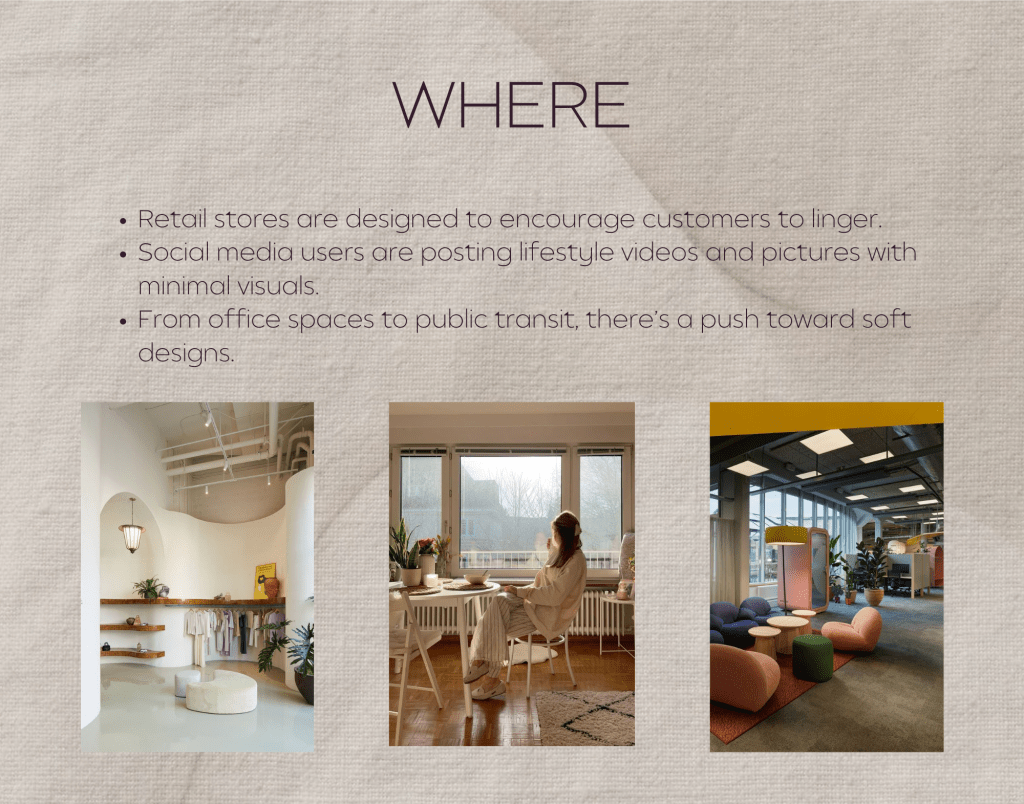 Elevated Comfort is a self-directed trend research project exploring the balance between ease and refinement in everyday dress. Through a photographic study of my neighborhood, I documented real-life expressions of the trend, capturing subtle details in texture, silhouette, and styling. All imagery was produced by me, grounding the work in firsthand observation and lived environments. The project translates these findings into a cohesive trend direction, highlighting versatility, quiet luxury, and the evolving relationship between comfort and polish.